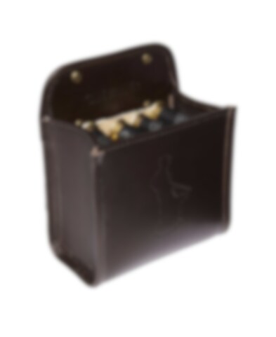 Patronväska tillverkad av högkvalitativt läder från Italien som är vegetabiliskt garvat. Siluett av jägare med hund ingraverat på framsidan. Försedd med två hällor på baksidan så att den går att fästa i bältet. Plats för en låda patroner.